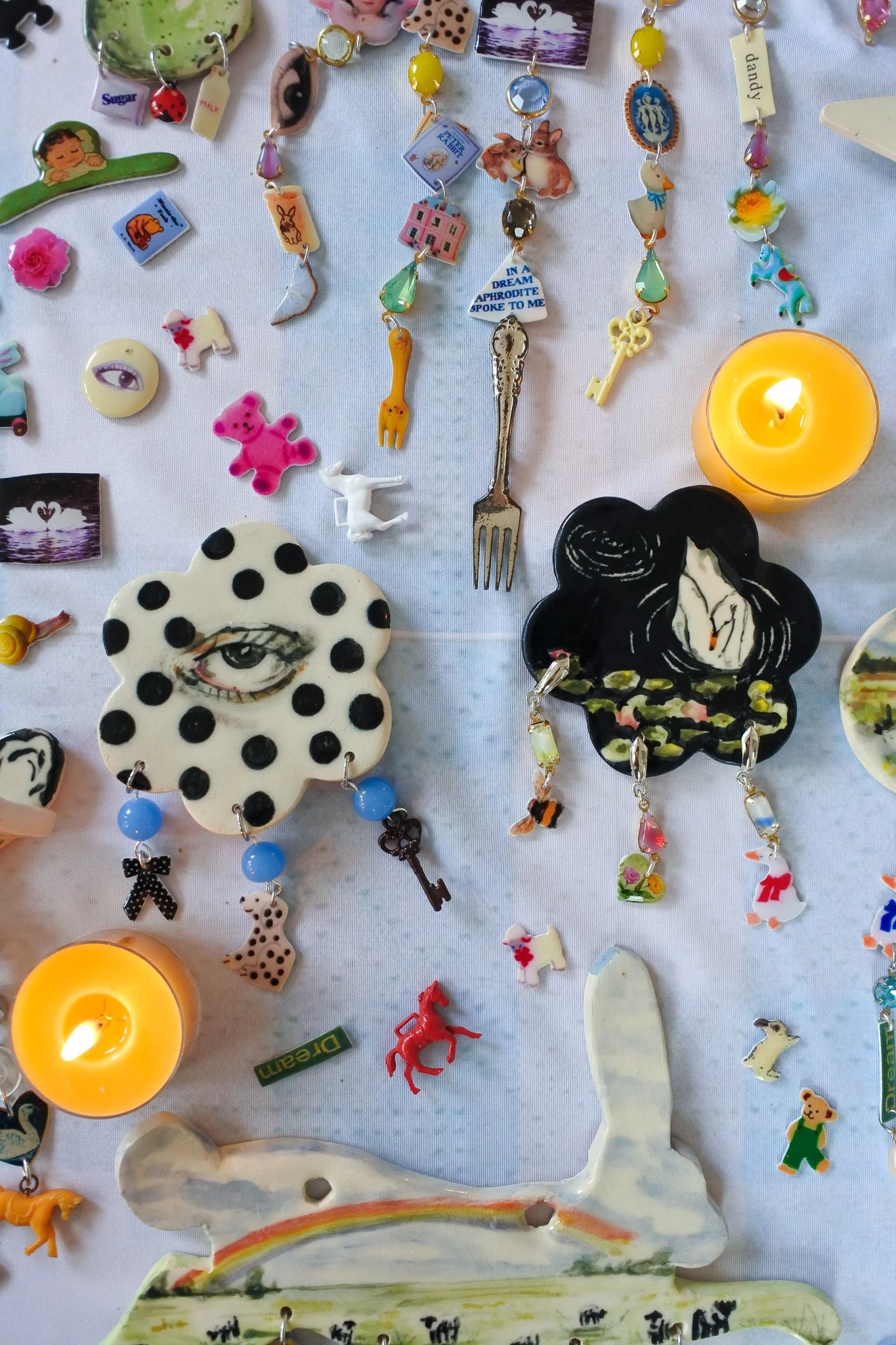 Sweet Dreams by Haricot Vert x ceramicsalyssa - a capsule collection of handmade and hand-painted ceramics embellished and adorned with Haricot Vert’s picto-charms and vintage findings.